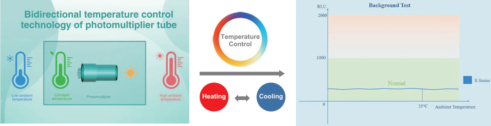 Automatic temperature control in the measuring chamber can keep a stable background value, not affected by