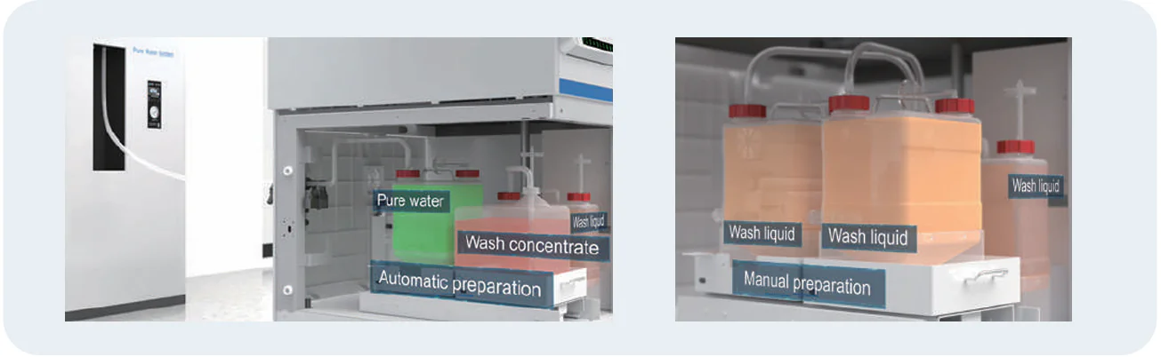 - If water purification system is not available, the wash liquid preparation can be done by manually mixing with pure water