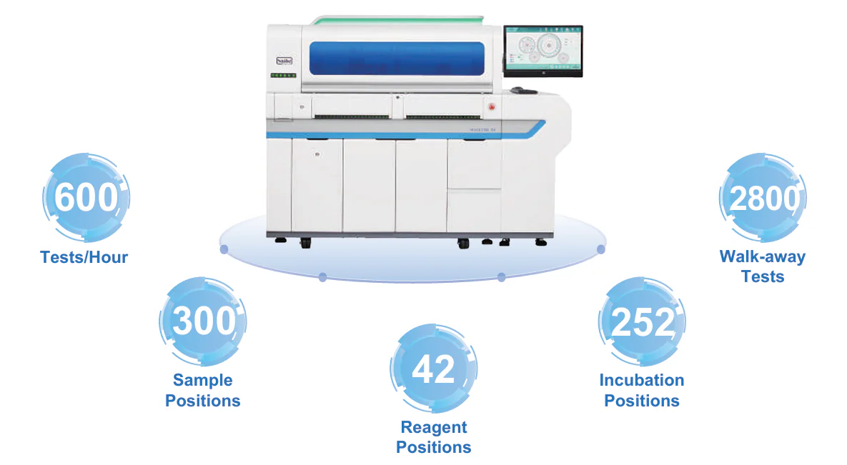- One of the fastest CLIA analyzers with 600 T/H (Single module)